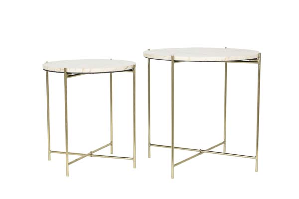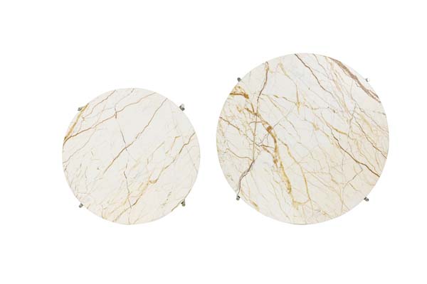 6759061 – Table d’appoint S/2 Ø42×45+Ø52×50 cm marbre brun-or